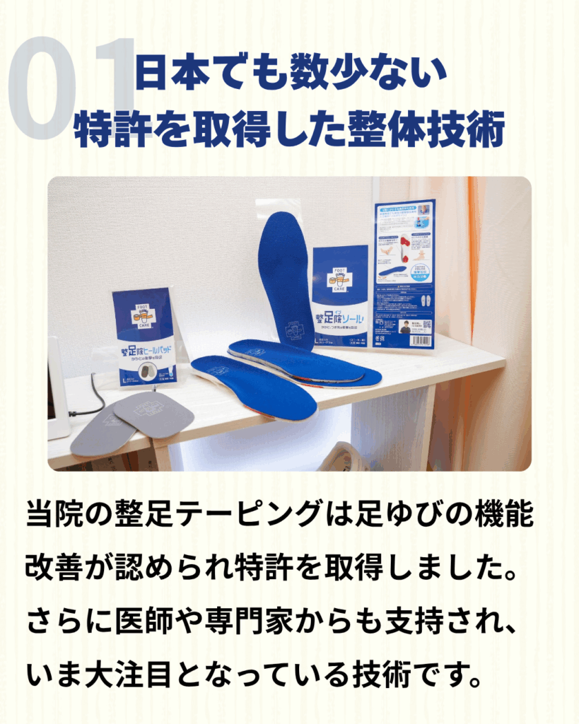 南海線難波駅より徒歩2分でなんばパークス近くだから買い物終わりにも通いやすい!これまで多くの足のトラブルに向き合ってきたスタッフが在籍し、外反母趾・内反小趾・浮き指など幅広い足のお悩みに対応いたします。特許取得の独自テーピング技術で、痛みの原因からしっかり改善!