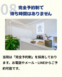 ご予約はお電話、お問い合わせフォーム、LINEで受け付けております。