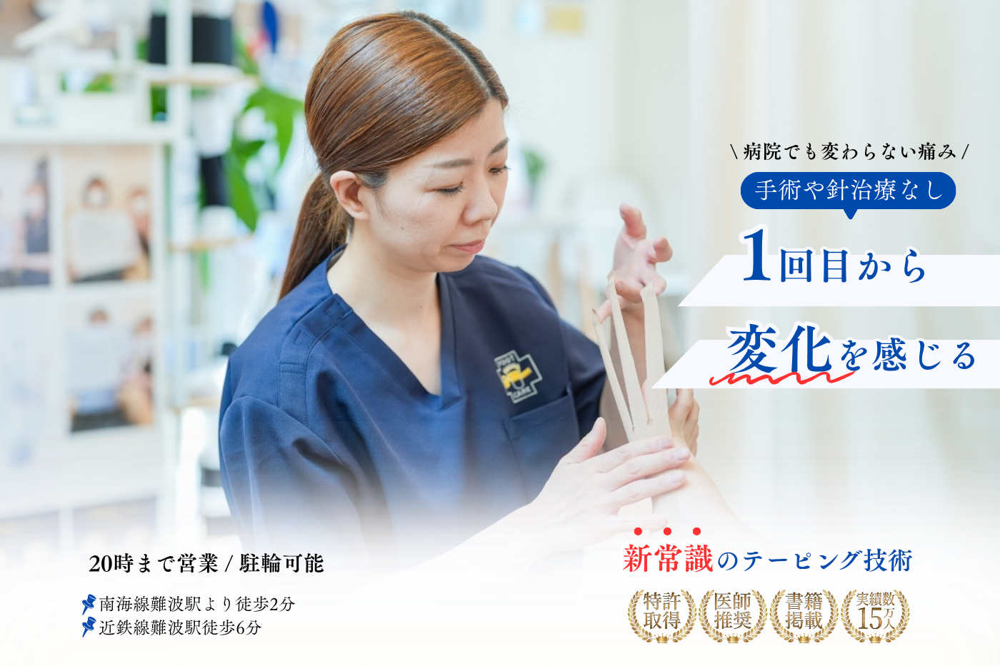 南海線難波駅より徒歩2分でなんばパークス近くだから買い物終わりにも通いやすい!これまで多くの足のトラブルに向き合ってきたスタッフが在籍し、外反母趾・内反小趾・浮き指など幅広い足のお悩みに対応いたします。特許取得の独自テーピング技術で、痛みの原因からしっかり改善!